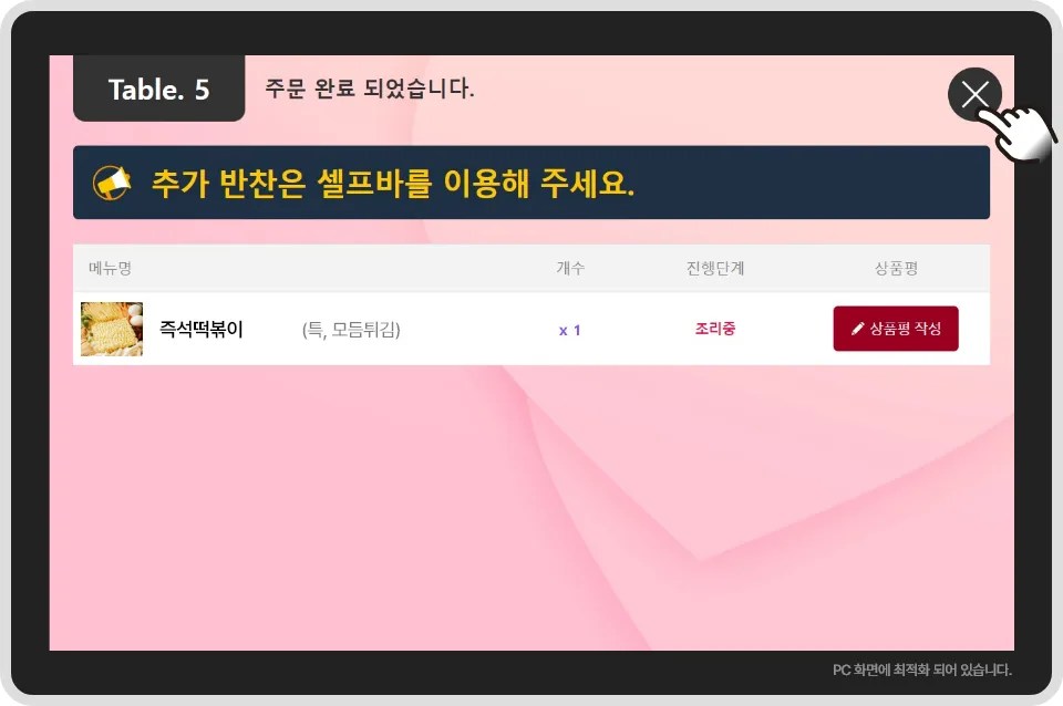 이것을 테스트하는 방법이 있는데요. 결제와 동시에 전원을 껐을때, 주방에 주문서가 나오는지 확인해 보시면 됩니다.